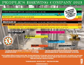 We were established in 2009 and are located in Lafayette, Indiana. We produce hand-crafted beers to fit many people. We brew beers that you want to drink, not just try. Our selection of year-round, seasonal and specialty beers means there is something for everyone. We have a passion for classic styles. American ales, German lagers, Belgian ales, English ales and more can be found all around Indiana and Chicago. Ask for People’s where you buy beer or come see us at the brewery.